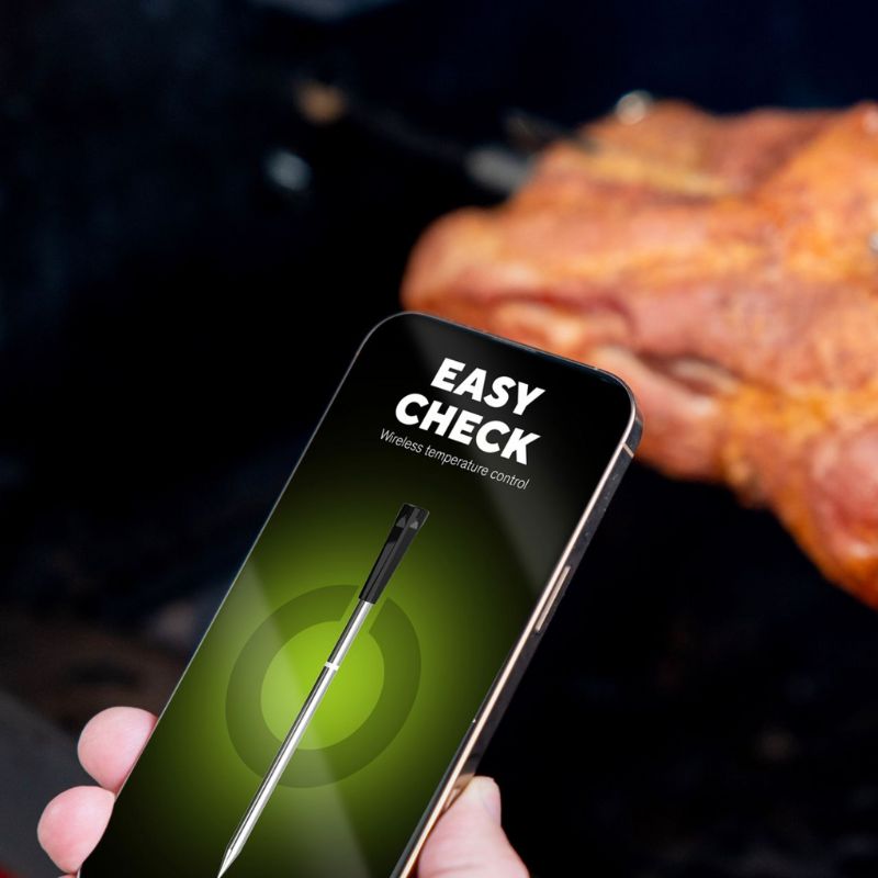 Το Θερμόμετρο Easy Check Single Outdoorchef είναι ένα σύγχρονο, πλήρως ασύρματο Bluetooth θερμόμετρο ψησταριάς, σχεδιασμένο για μέγιστη άνεση και ακρίβεια. Αποτελεί ιδανική επιλογή για ερασιτέχνες και επαγγελματίες που θέλουν να παρακολουθούν με ακρίβεια το ψήσιμο κρεάτων (π.χ. μπριζόλες, κοτόπουλο, ψητά, σούβλες), χωρίς να μένουν κοντά στη ψησταριά.