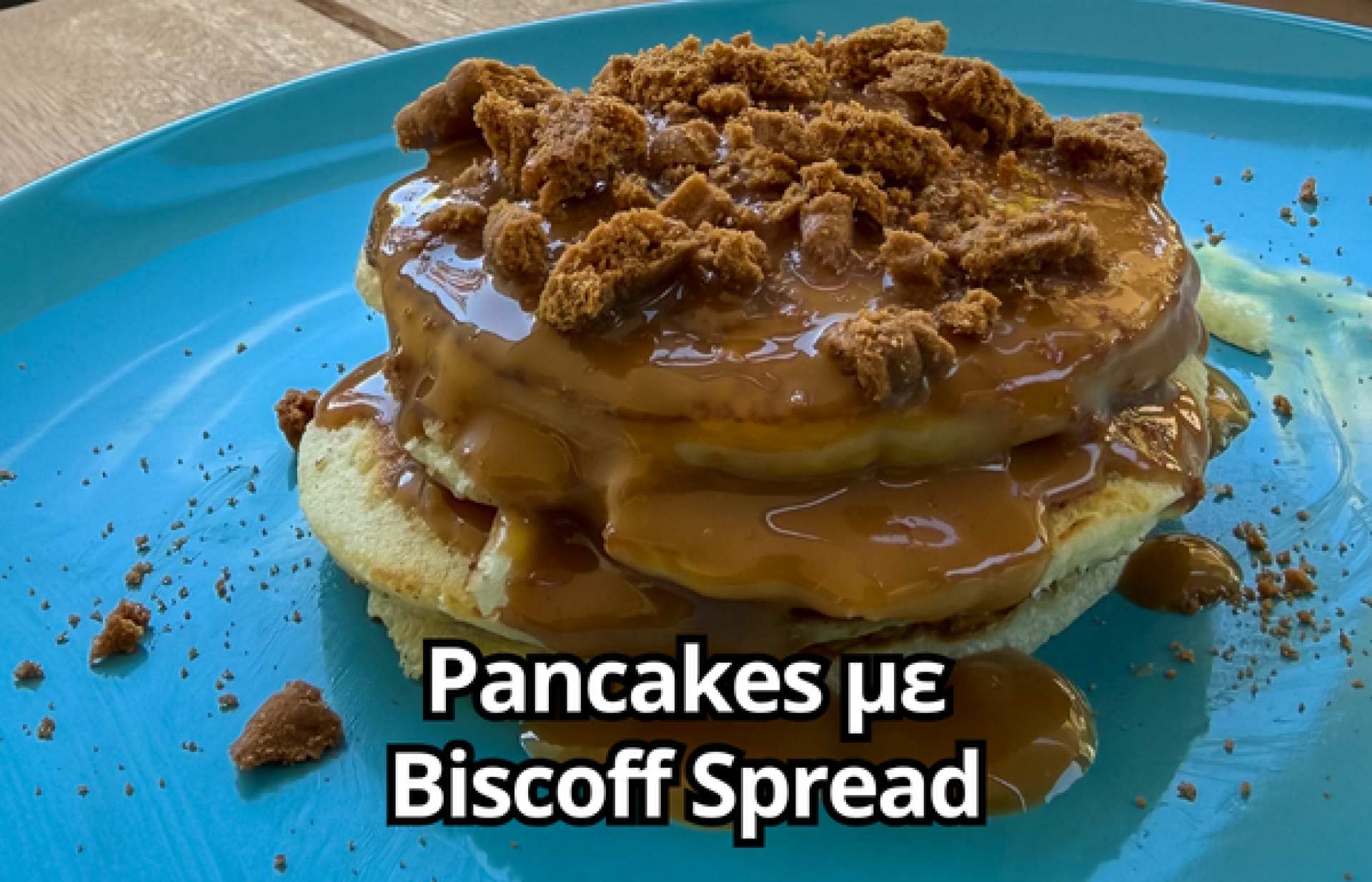 - Σέρβιρε τα pancakes ζεστά, περιχύνοντάς τα με τη σάλτσα Biscoff. Συμπλήρωσε με φρέσκα φρούτα της επιλογής σου και τριμμένα μπισκότα Biscoff για έξτρα υφή και γεύση.